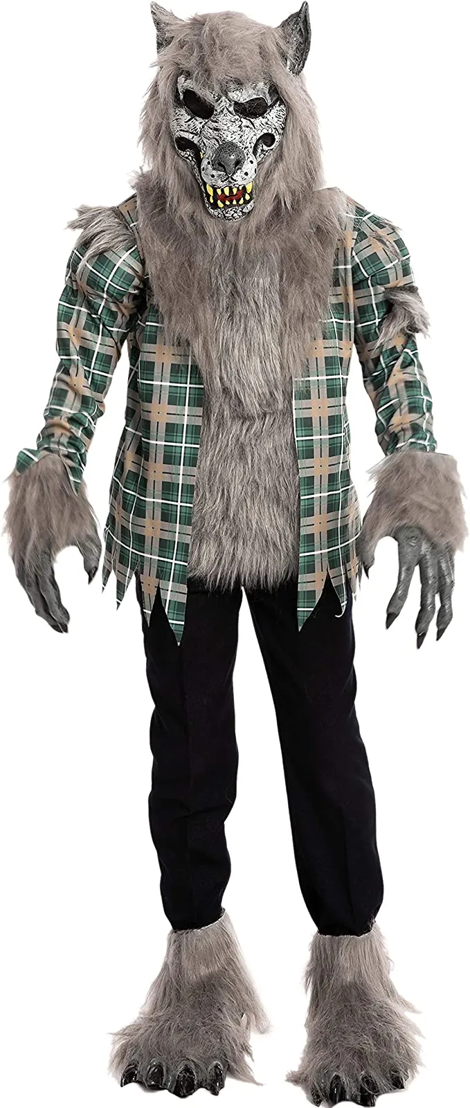 • Werewolf Kids Costume includes Werewolf Mask, Torn Faux Fur Plaid Shirt, Gloves, and Shoes Cover.