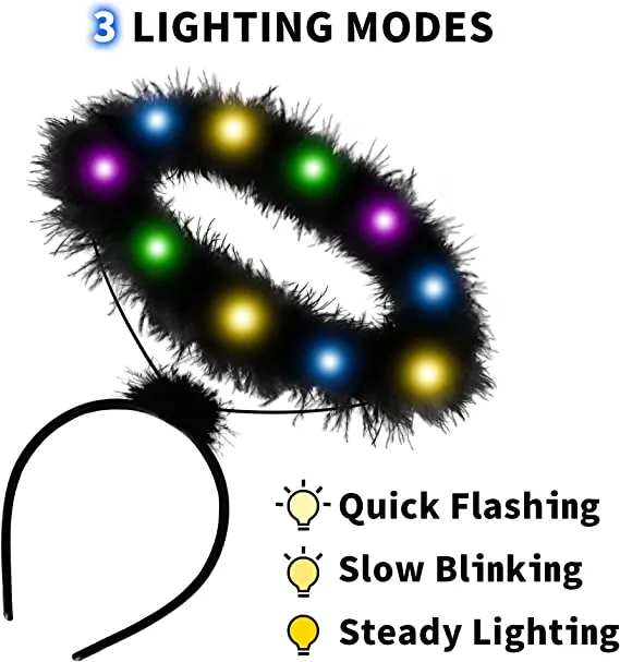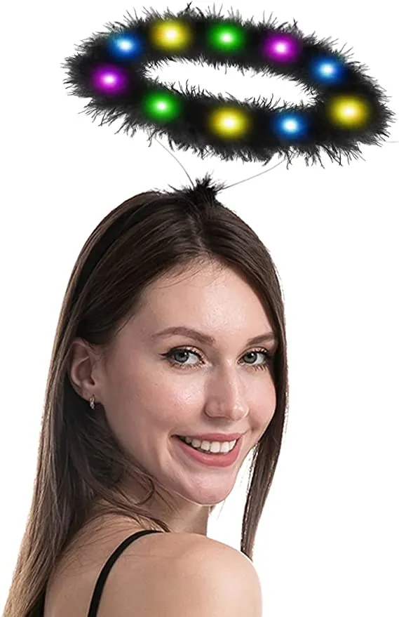 The light up halo headband is a stylish and fun accessory for your upcoming Halloween or Christmas party! This halo headband is sure to make you stand out among the crowd! Our Cute Flashing Halo Headband with Feathers is a great accessory for your angel-themed dress-up costume, Halloween party, or other cosplay. Perfect for parties, festivals, or other themed events, these halos are sure to provide lots of fun for all ages! It’s great for costumes and cosplay, and makes a perfect gift too! Flashing LED lights make it look like heaven sent from the heavens. And best of all, it comes with flashing LED lights that will make you shine bright on Halloween night!