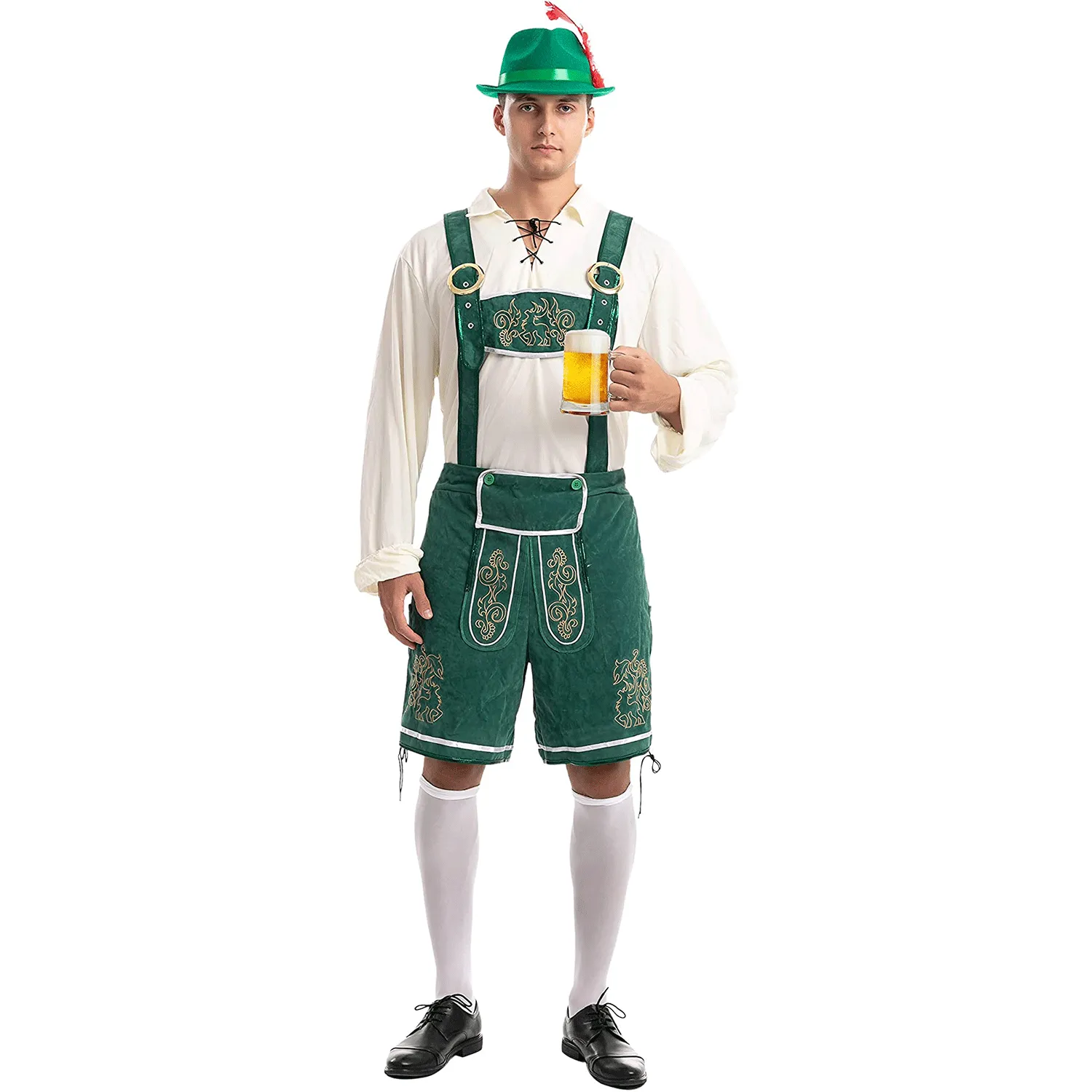 The mens Oktoberfest costume includes checkered suspenders and a detachable bib, a pullover shirt with lace-up collar, a pair of knee socks, and a German Alpine Hat (Beer stein not included). The most popular pair of lederhosen pants are green: both elegant and trendy, this classic men’s Oktoberfest costume is 100% your traditional German lederhosen for life! When it comes to Oktoberfest costumes for men, comfort is always a top issue. The suspenders are exactly in place, and the lederhosen is lined and adjustable.