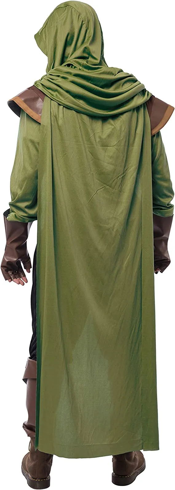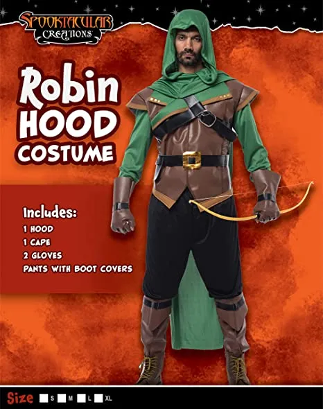 This Halloween, dress up with a robin hood costume to create a stunning appearance that will have everyone swooning. For a low cost, this costume will turn you into that dashing hustler. Long-sleeved green hooded top and vest are included with this Halloween costumes for men. One buckled strap secures the front sections of the brown fake suede vest. Also intricate is this outfit. Including a belt with a pouch for all of your gold, a pair of pants with boot covers, and matching gauntlet gloves! Youβll be prepared to head out for a night of pure gallantry. Donβt forget to finish the historical storybook figureβs appearance by adding a bow and arrow (not provided).