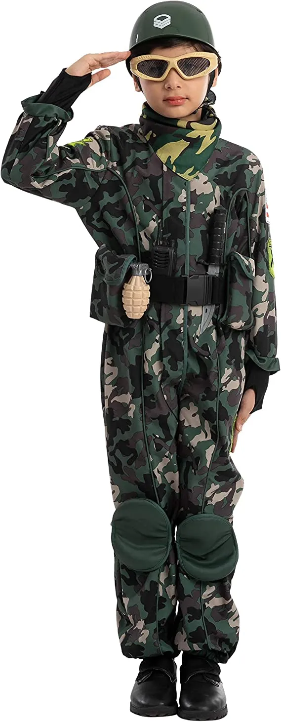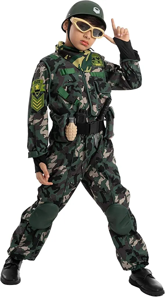 - Military Outfit for Boys. Let your little heroes wear this adorable military costume set and let them channel the brave soldiers who protect our land and liberty! A Super Durable Set with Superior Quality. Material made out of 100% Polyester.