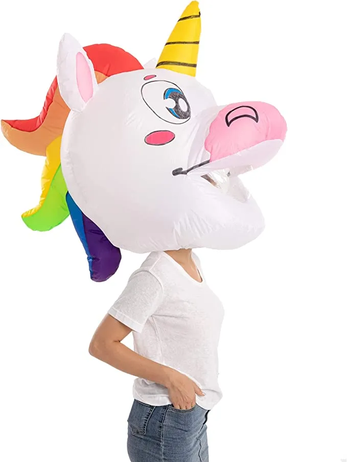 - Inflatable Unicorn Bobblehead Costume Air Head Mask. One Size Fits All Adults.