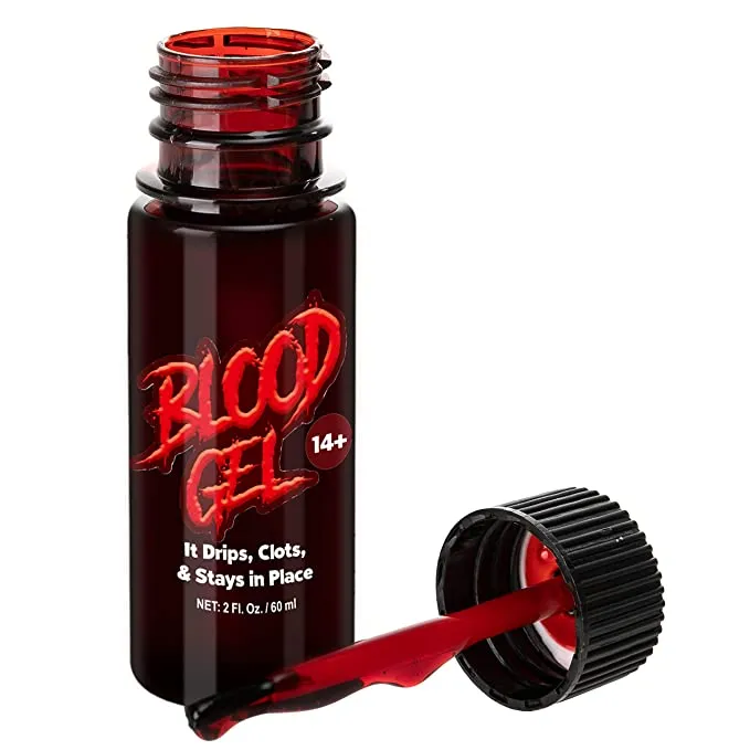 • Vampire Halloween Makeup is 2 oz Fake Blood Gel. Fake blood features an incredibly vibrant blood-red color that looks like the real thing. It is great for creating frightfully realistic special effects.