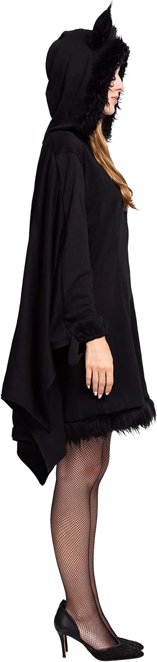 Bat woman costume can work great as part of a vampire couple or group theme. All night long, you can cuddle up to your favorite vampire or other bat companions. The outfit includes a jumpsuit with attached bat wings and a hood with fluffy ears. The dress is rather short, therefore for full coverage, you should definitely wear hot pants or boy shorts, according to our models. Take a great pair of black tights with you if you want to go all-black! Additionally, you may just return home to cuddle up and sleep all day if you tire of the nightlife. In retrospect, that lifestyle does sound like a lot of fun! Explore more costumes for women today!