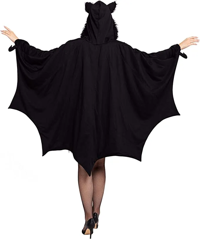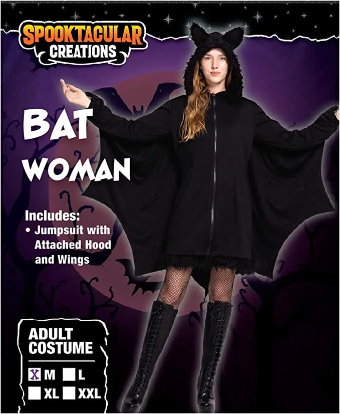 • Bat Woman Halloween Costume Includes a Jumpsuit with Attached Bat Fuzzy Ears Hood and Bat Wings