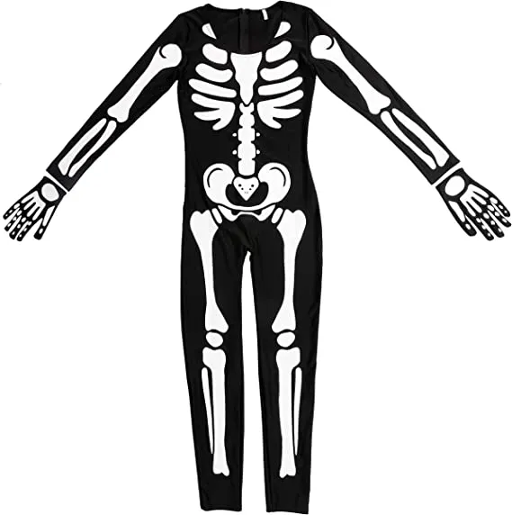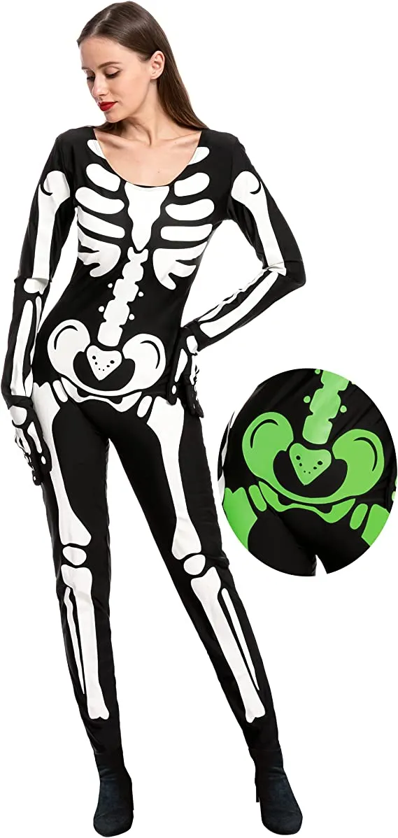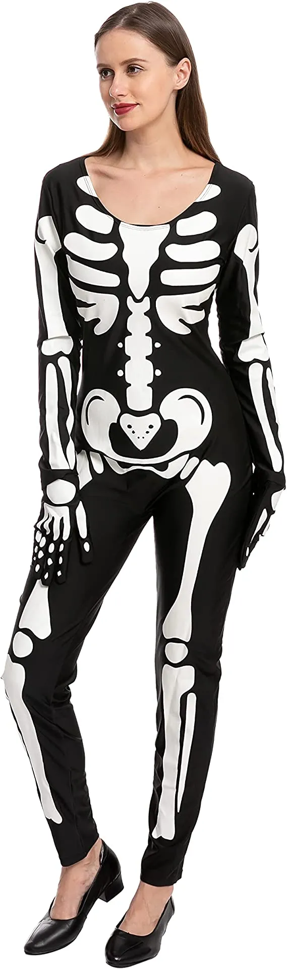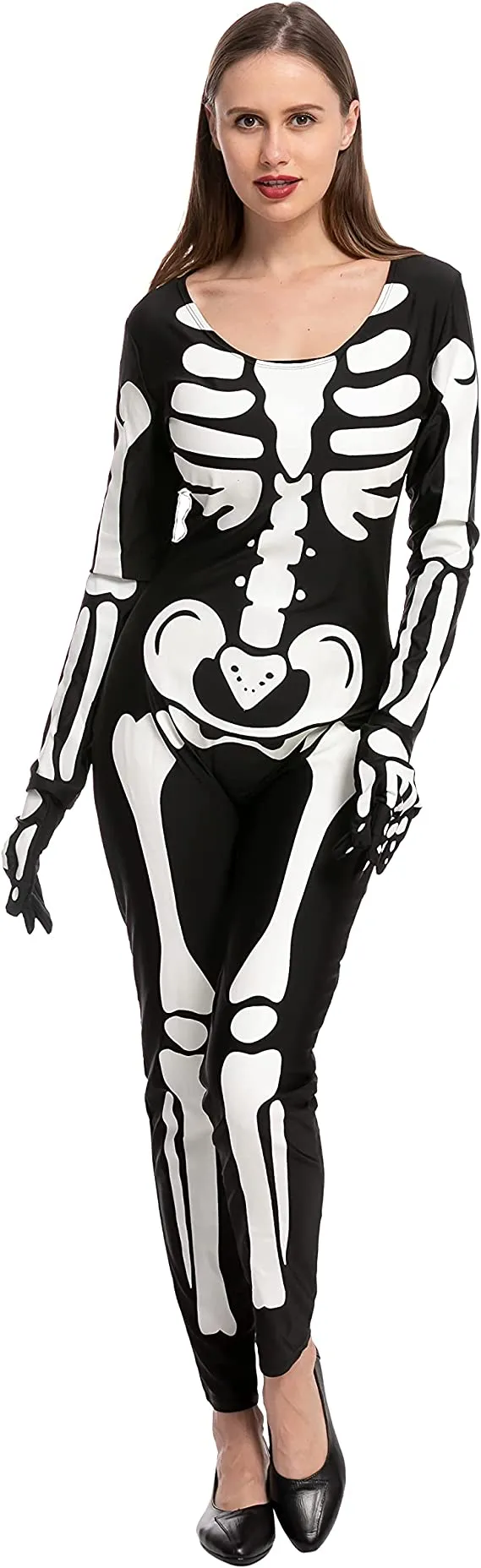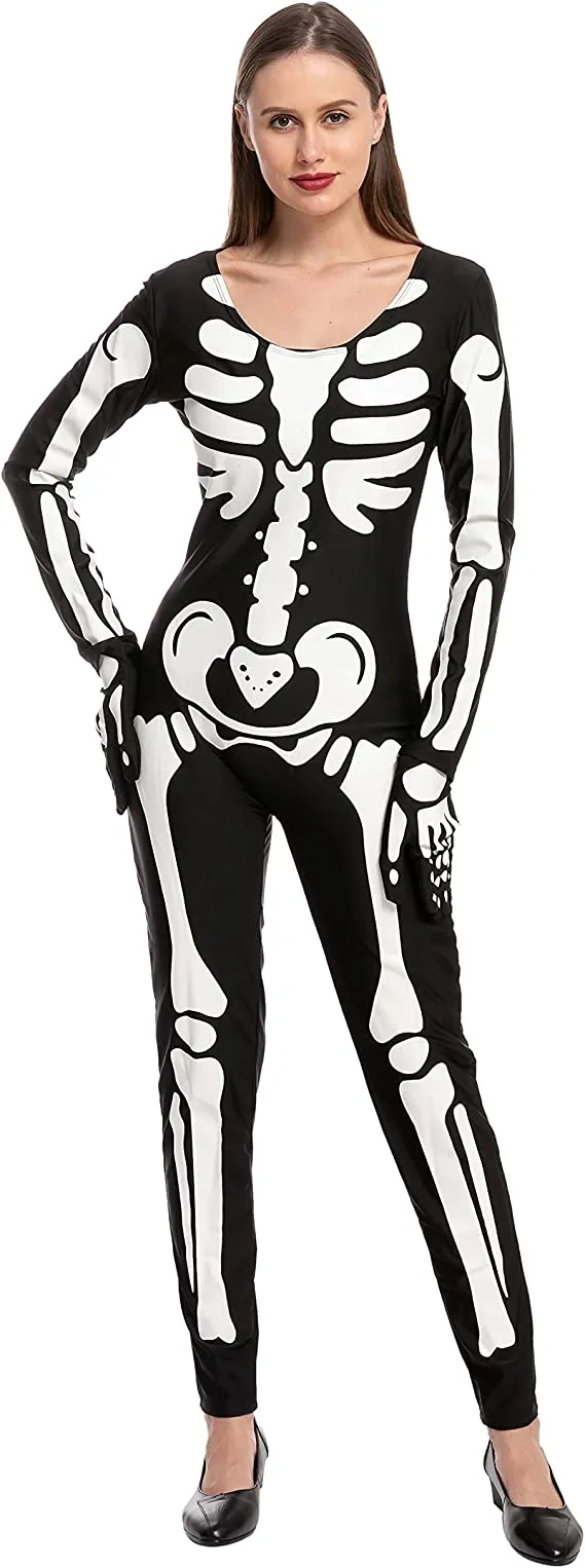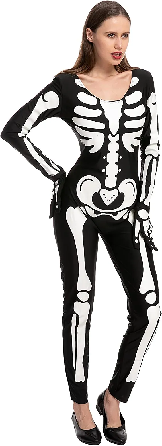 A truly worthy womens skeleton costume should show off your x-ray bone structure while highlighting your curves at the same time. Thatβs why weβve created this form-fitting bodysuit! Sure, thatβs a bit creepy, but Halloween is all about pushing the boundaries of good taste. If you are all about embracing the dark side, dress up in this costume, with chest bones. Whether youβre celebrating Halloween or simply want to bring smiles to peopleβs faces, these looks are perfect. When a skeleton comes to life, thereβs something extra thrilling about it that makes it the ideal costume for Halloween or any other occasion when you want to give the expression βbag of bonesβ a new meaning.